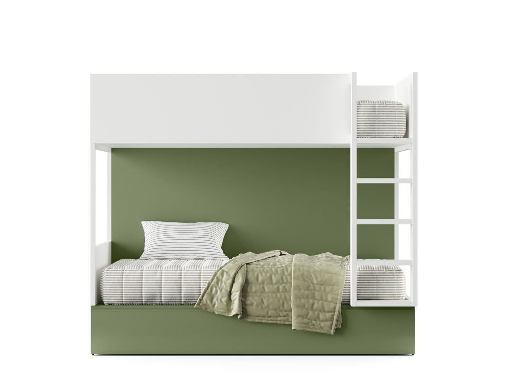 Tato palanda se žebříkem je dlouhá 200 cm x 100 cm. K patrové posteli je možné dokoupit úložné zásuvky nebo další výsuvné lůžko a v nabídce máme také různé typy zábran(viz. obrázky)