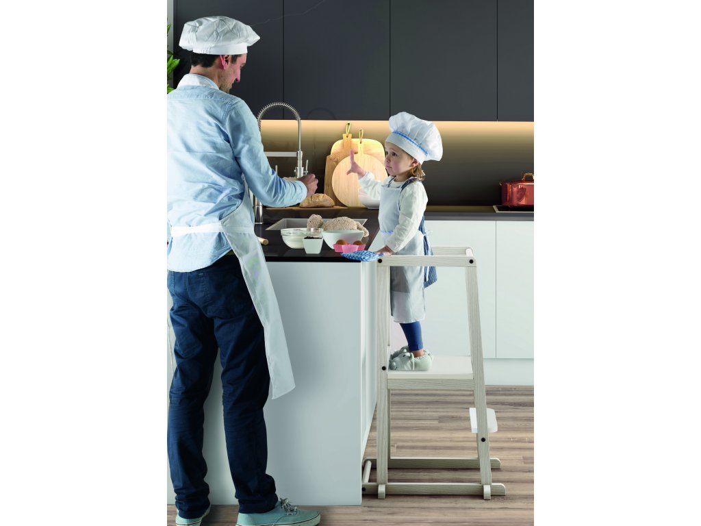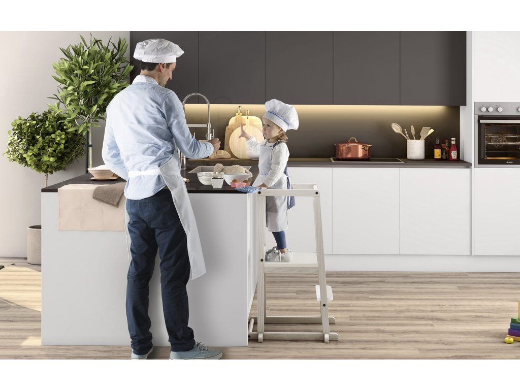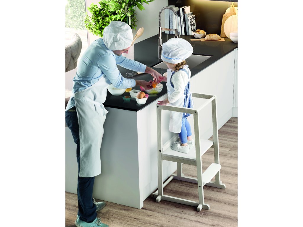 Učební věž je ideální k probuzení zájmu těch nejmenších třeba v kuchyni u vaření. Aby s vámi dítě mohlo sdílet radost při společné práci, musí být ve stejné výšce.