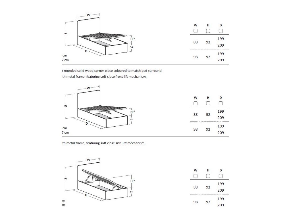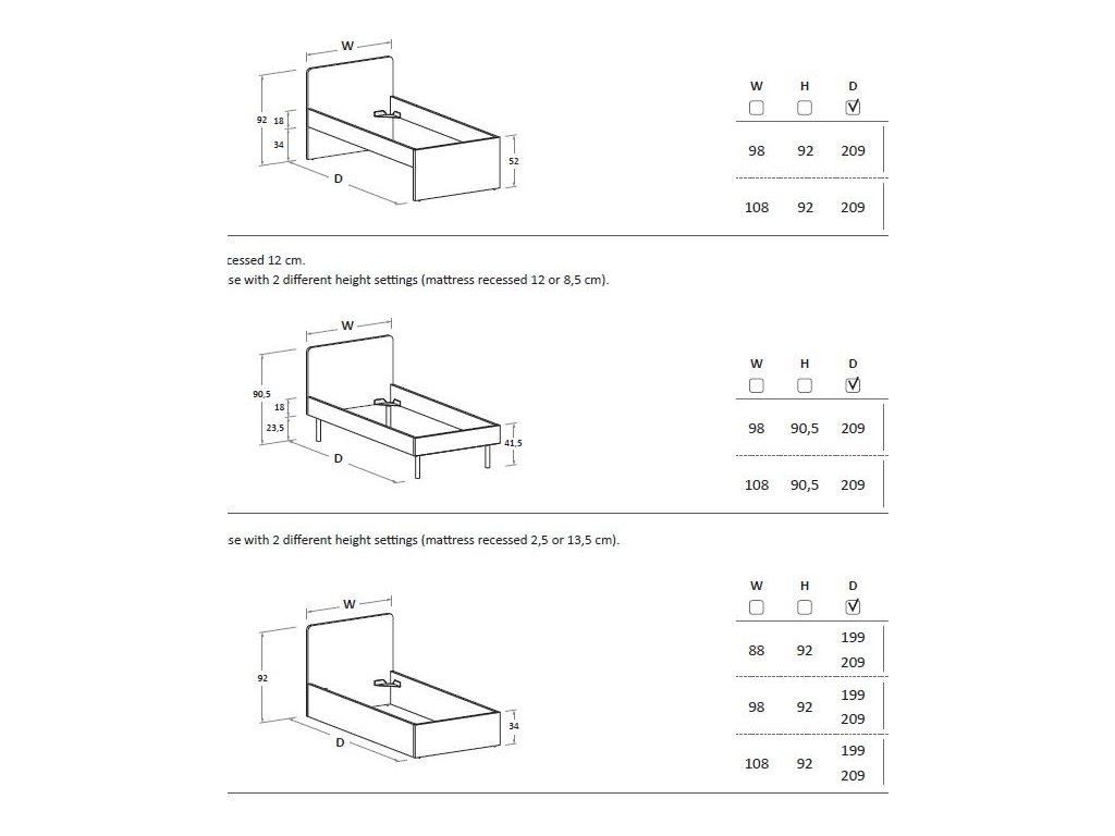 - š 88/98128 x d 199/209/229 x v 92 cm